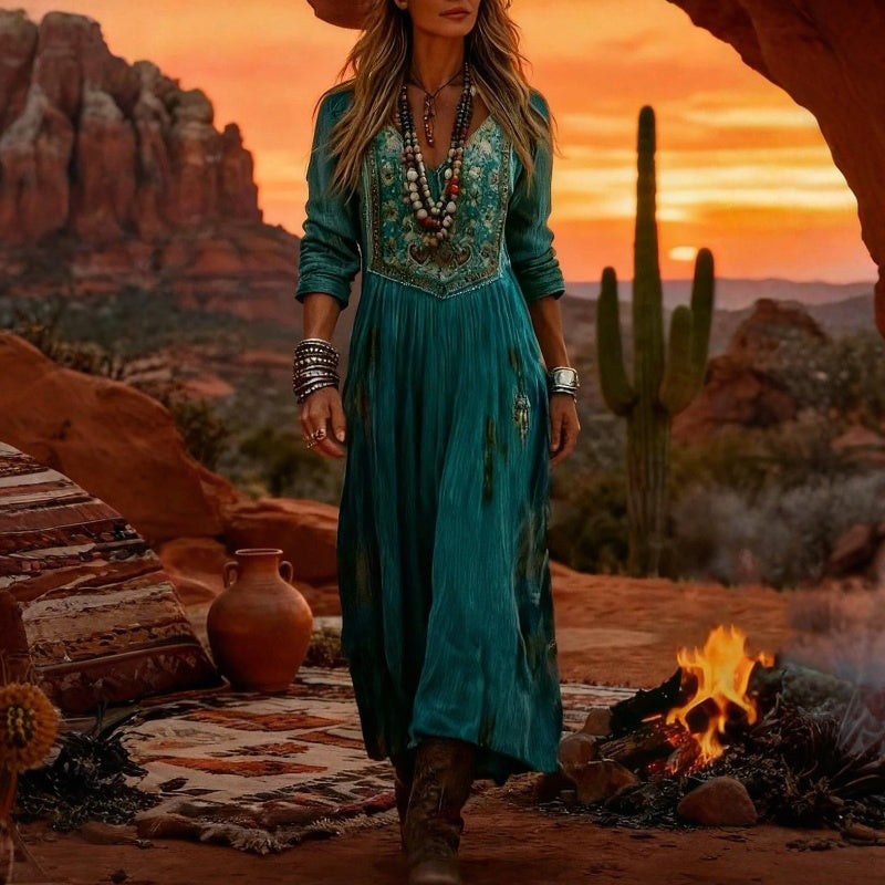 【Manga larga】Vestido vintage con estampado floral